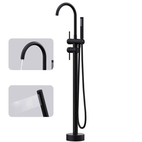GIMILI Floor Mount Bathtub Faucet Freestanding Tub Filler Standing High Flow Shower Faucets Shower Mixer Taps, Swivel Gooseneck Spout with Cylinder Handheld Matte Black