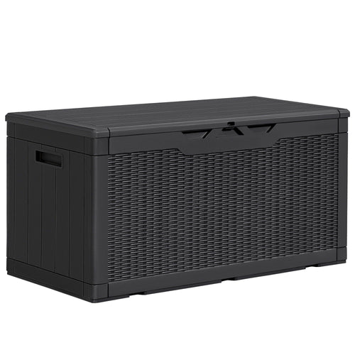 Greesum 100 Gallon Resin Deck Box Lockable Large Outdoor Storage Boxes for Garden Tools, Patio Furniture Cushions, Pool Supplies, Black