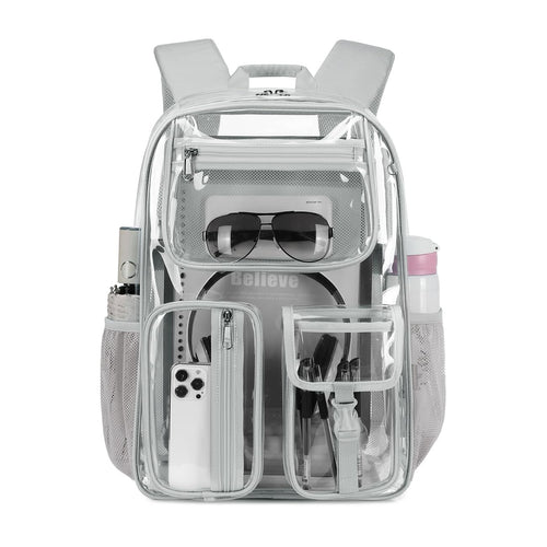 Heavy Duty Clear Backpack Clear BookBag,16 x11 x5inch TPU Large Capacity See Through Backpack for Sport Events,Travel (Grey)