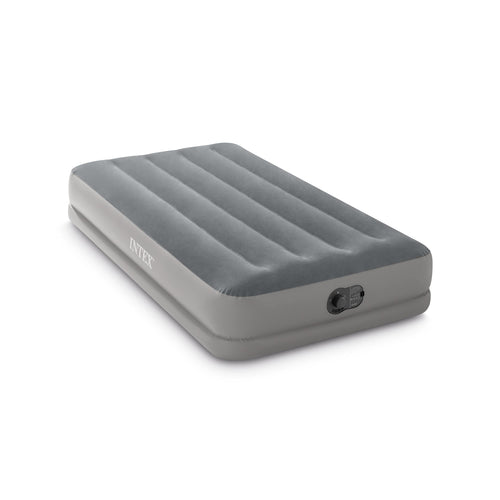 Intex 64112E Dura-Beam Standard Prestige Air Mattress: Fiber-Tech – Twin Size – Built-in USB Electric Pump – 12in Bed Height – 300lb Weight Capacity