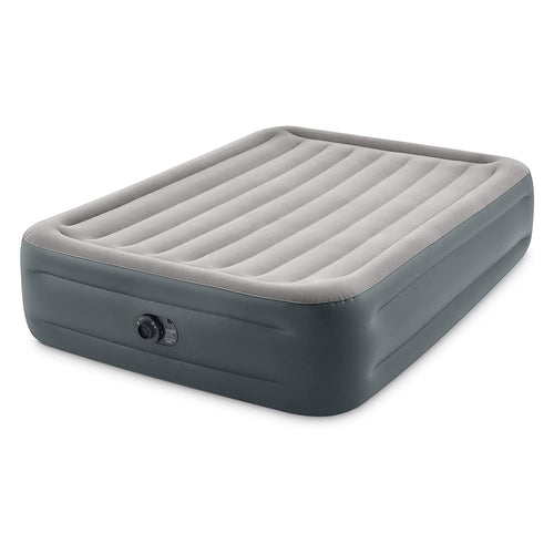 Intex 64125ED Dura-Beam Plus Essential Rest Air Mattress - Fiber-Tech – Queen Size – Built-in Electric Pump – 18in Bed Height – 600lb Weight Capacity