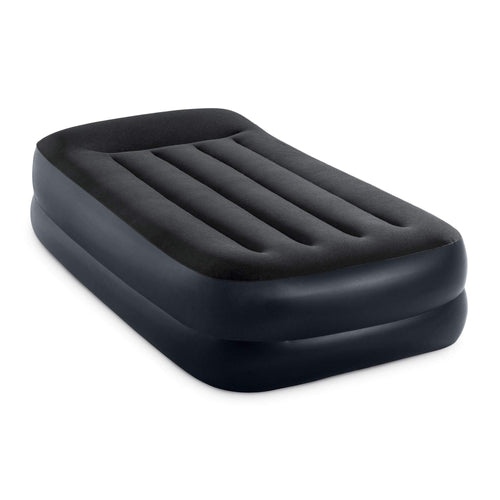 Intex 64121ED Dura-Beam Plus Pillow Rest Air Mattress: Fiber-Tech – Twin Size – Built-in Electric Pump – 16.5in Bed Height – 300lb Weight Capacity