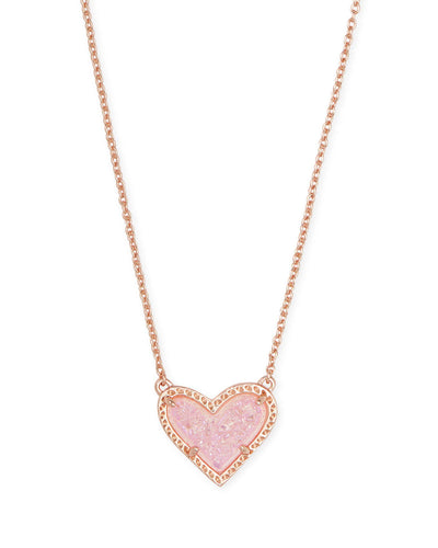 Kendra Scott Ari Heart Adjustable Length Pendant Necklace for Women, Fashion Jewelry, 14k Rose Gold-Plated, Pink Drusy