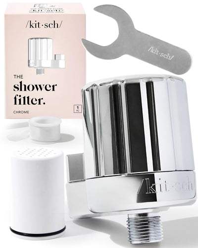 Kitsch Shower Head Filter for Hard Water - Water Softener for Shower, Hardwater Filter for Showerhead, Improves Hair, Nails & Skin, Removes Chlorine, Heavy Metals & Other Harmful Substances - Chrome