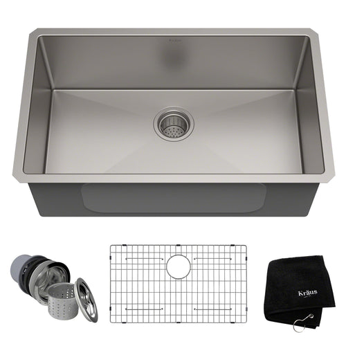 KRAUS Standart Pro 30 -inch Undermount Single Bowl 16 Gauge Stainless Steel Kitchen Sink, KHU100-30