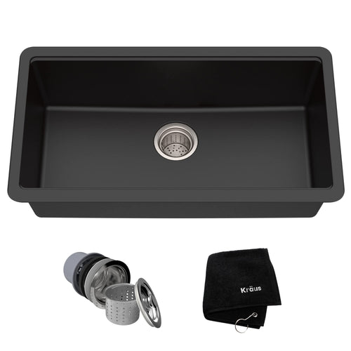 KRAUS Quarza 31-inch Undermount Single Bowl Granite Kitchen Sink in Black Onyx, KGU-413B