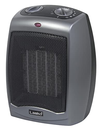 Lasko Electric Ceramic Space Heater with Tip-Over Safety Switch for Home, Overheat Protection, Thermostat and Extra Long Cord, 2 Speeds, 9.2 Inches, Dark Gray, 1500W, 754201