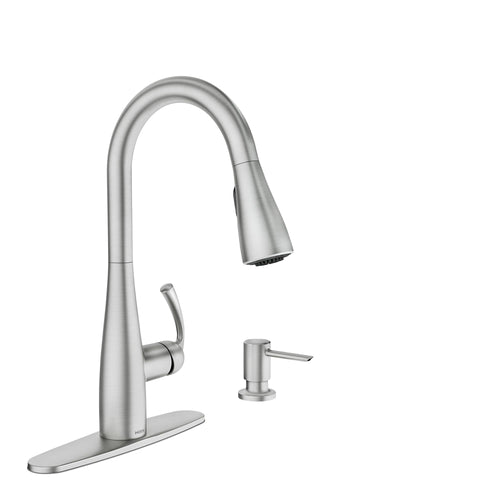Moen Essie Spot Resist Stainless Pull-Down Sprayer Kitchen Faucet Set with Soap Dispenser - Upgrade Your Kitchen Sink with a Modern Pull Down Spray Head, 87014SRS