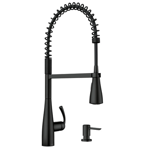 Moen Essie Matte Black One-Handle High Arc Pre-Rinse Spring Pulldown Kitchen Faucet with Power Clean, 87814BL