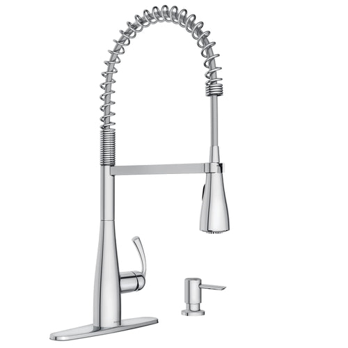 Moen Essie Chrome One-Handle High Arc Pre-Rinse Spring Pulldown Kitchen Faucet with Power Clean, 87814