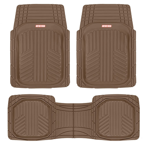 Motor Trend FlexToughXL DeepDish Floor Mats for Cars, Full Set All-Weather Rubber Automotive Floor Mats Waterproof Heavy Duty Car Mats Flexible Floor Liners for Car Truck Van SUV Car Floor Mat (Brown)