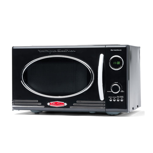 Nostalgia Retro Countertop Microwave Oven - Large 800-Watt - 0.9 cu ft - 12 Pre-Programmed Cooking Settings - Digital Clock - Kitchen Appliances - Black