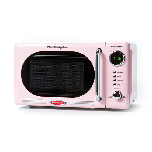 Nostalgia Retro Compact Countertop Microwave Oven - 0.7 Cu. Ft. - 700-Watts with LED Digital Display - Child Lock - Easy Clean Interior - Pink