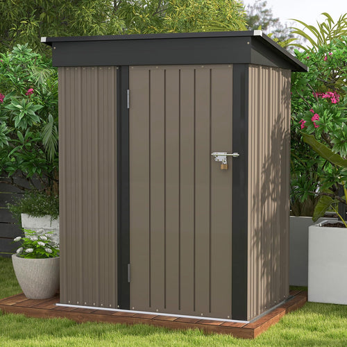 Patiowell 5x3 FT Outdoor Storage Shed, Tool Shed with Sloping Roof and Lockable Door, Metal Shed for Backyard Garden Patio Lawn, Brown