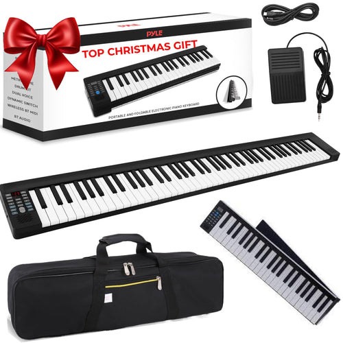 Pyle Electric Keyboard Piano 88 Keys - Portable Foldable Digital Piano Keyboard With Bluetooth, 128 Rhythms/Tones,Semi weighted keys, Sustain Pedal, Piano Bag - for Beginners, Kids,Adult -PKBRD8100