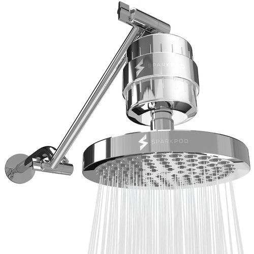 SparkPod 6" High Pressure Rain Shower Head with 23 Stage Filter Capsule & 11 Inch Adjustable Shower Arm Extension - Shower Filter Reduces Chlorine for Smoother Hair & Skin (Round, Polished Chrome)