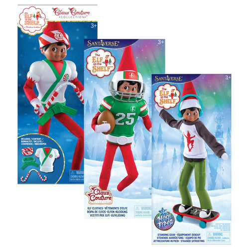 The Elf on The Shelf Claus Couture Active Bundle: Holly Jolly Ollie Skateboarder, Touchdown Tidings Set, and Karate Kicks (Scout Elf Not Included)