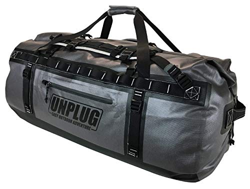 Unplug Ultimate Adventure Bag -1680D Heavy Duty Waterproof Duffel Bag for Boating, Motorcycling, Hunting, Camping, Kayaks or Jet Ski. Gets Gear Through Any Conditions (110L, Storm Grey)