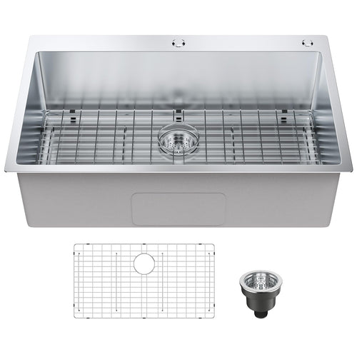 VEVOR Kitchen Sink, 304 Stainless Steel Drop-In Sinks, Top Mount Single Bowl Basin with Accessories, Household Dishwasher Sinks for Workstation, RV, Prep Kitchen, and Bar Sink, 33 inch