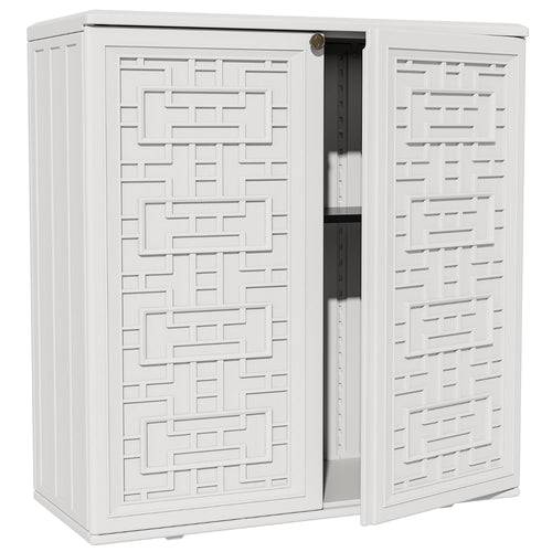 ZZM HDPE Outdoor Storage Shed, Outdoor Plastic Storage Cabinet, Horizontal Resin Tool Shed for Garden, All Weather Outdoor Storage Clearance, DIY Usage,Lockable and with one Shelf (White)