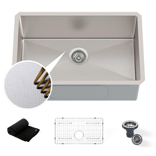 Beleeb Undermount Kitchen Sink 30" x 19", Scratch Resistant 3D Microbead Embossed Single Bowl Stainless Steel Sink with 10" Deep Basin,Easy Cleaning