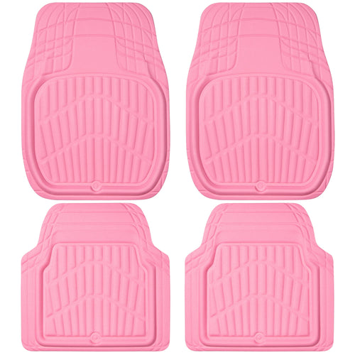 CAR PASS 4 Piece Leather Car Floor Mats -3D Cute Girly Waterproof All Weather Car Mat Full Set, Universal Trim to Fit & Anti-Slip Burr Bottom & Light Easy Clean for SUV Truck Auto Sedan Van(Pink)