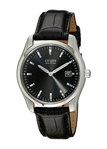 Citizen Eco-Drive Corso Quartz Mens Watch, Stainless Steel with Leather strap, Classic, Black (Model: AU1040-08E)