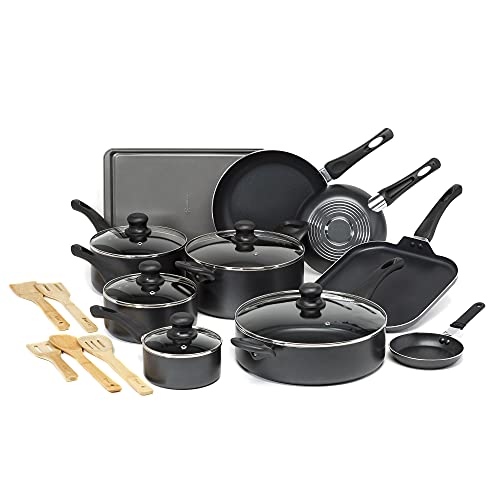 Ecolution Easy Clean Nonstick Cookware Set, Dishwasher Safe Kitchen Pots and Pans Set, Comfort Grip Handle, Even Heating, Ultimate Food Release, 20-Piece, Black
