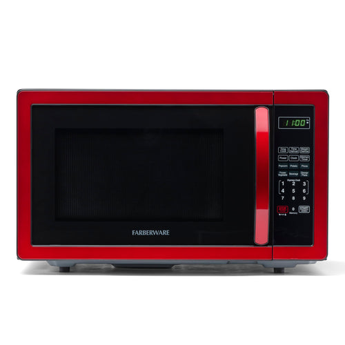 Farberware Countertop Microwave 1000 Watts, 1.1 cu ft - Microwave Oven With LED Lighting and Child Lock - Perfect for Apartments and Dorms - Easy Clean Metallic Red