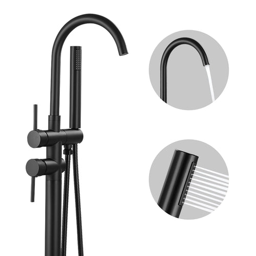 FGKQ Free Standing Tub Faucet Matte Black Floor Mounted Bathroom Bathtub Faucet Set with Hand Shower, 2 Handle Tub Filler