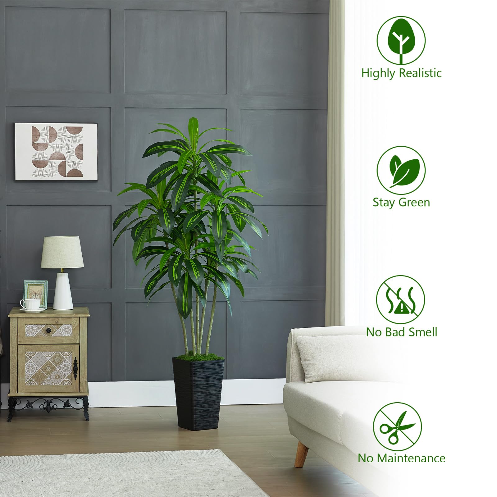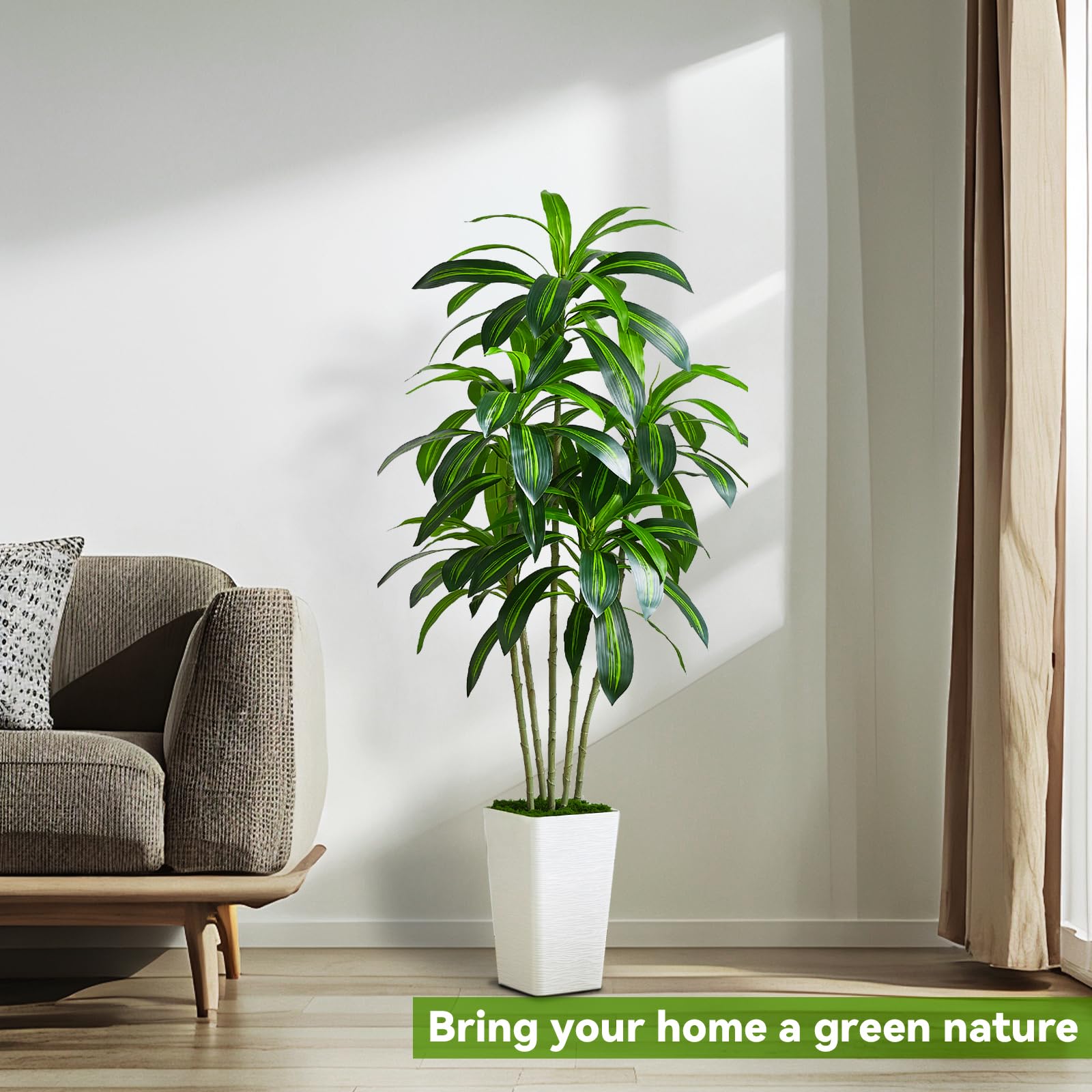 - Why FSOHOI? - It's a artificial dracaena tree with white Tall planter, featuring realistic 5 trunks! These designs give faux dracaena plant a lifelike appearance with realistic texture and look, bringing the beauty of nature right into your home.
