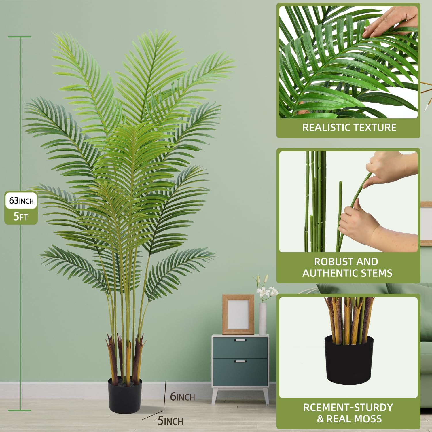 - 【Realistic Tropical Artificial Tree】Faux palm tree indoor are all selected from nature,this palm tree leaves are slender and smooth,like feathers in appearance, and the petiole is slightly curved. its leaves can be evergreen all year round,help you feeling romance and beauty of nature without leaving home.