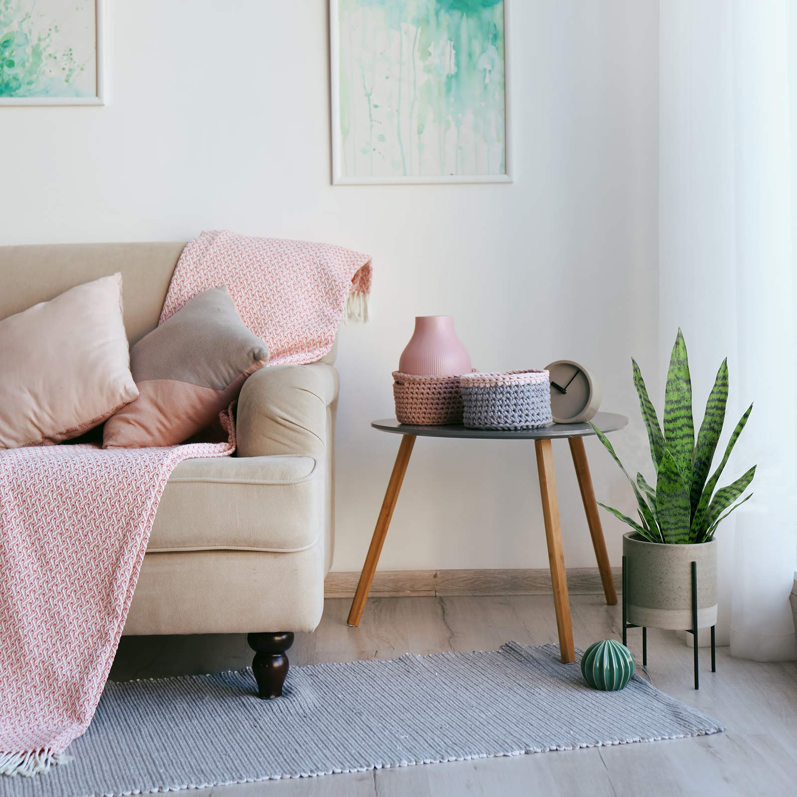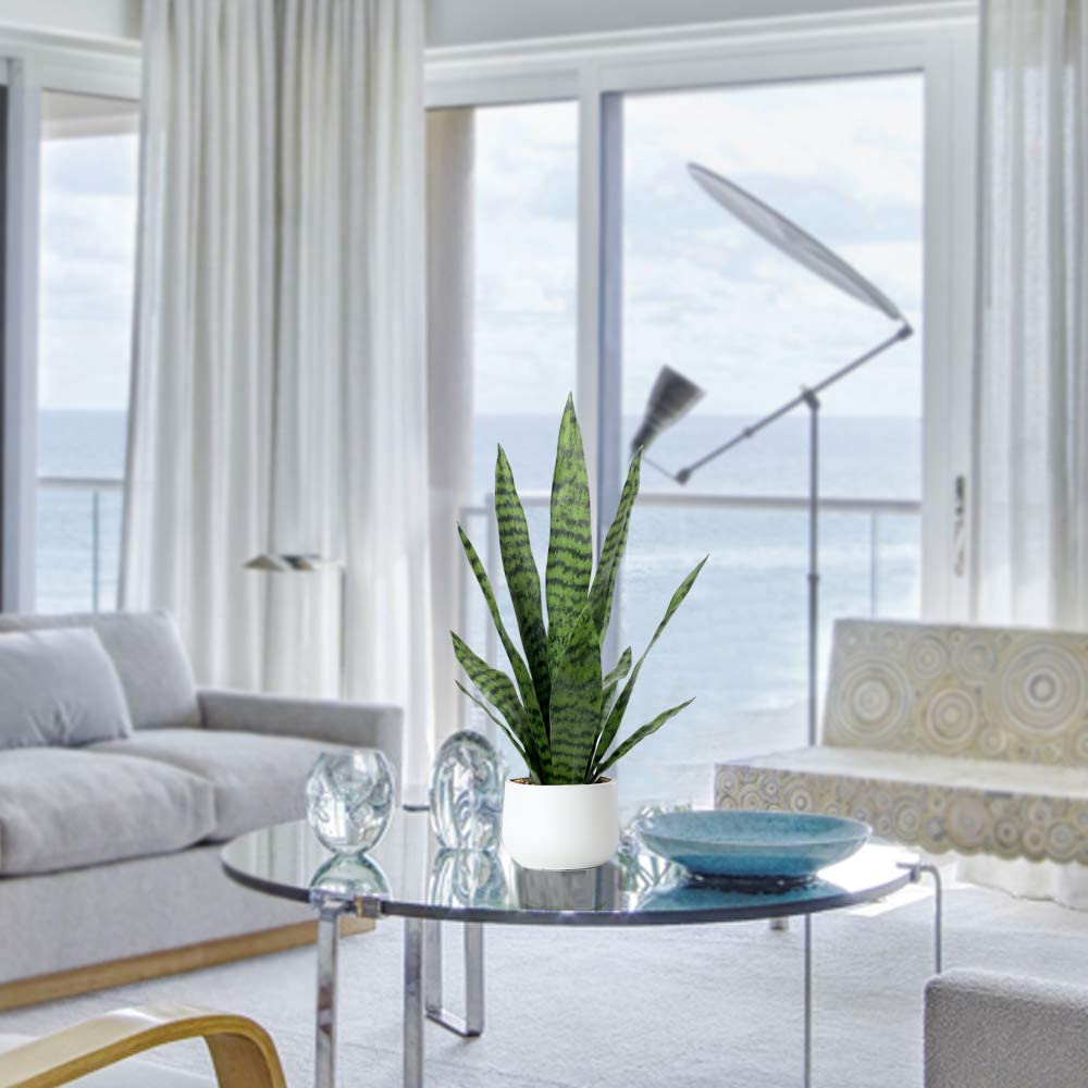 - LIFE-LIKE CACTUS PLANT: A realistic faux snake plant potted inside a round plastic planter.