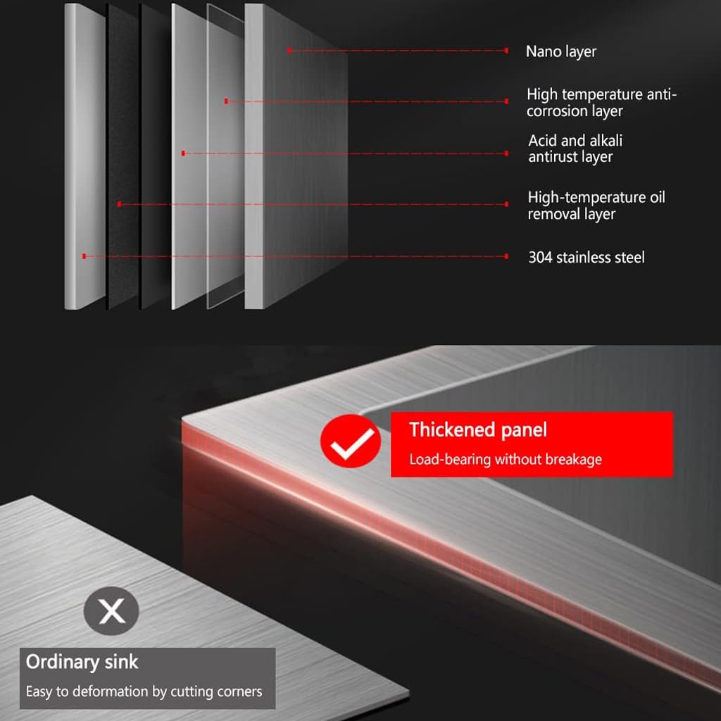 - 【QUALITY MATERIALS】Black stainless steel sink with commercial grade NANO brushed finish, like water on a lotus leaf, without leaving a trace of water. Very easy to clean, with super strength and durability, durable.
