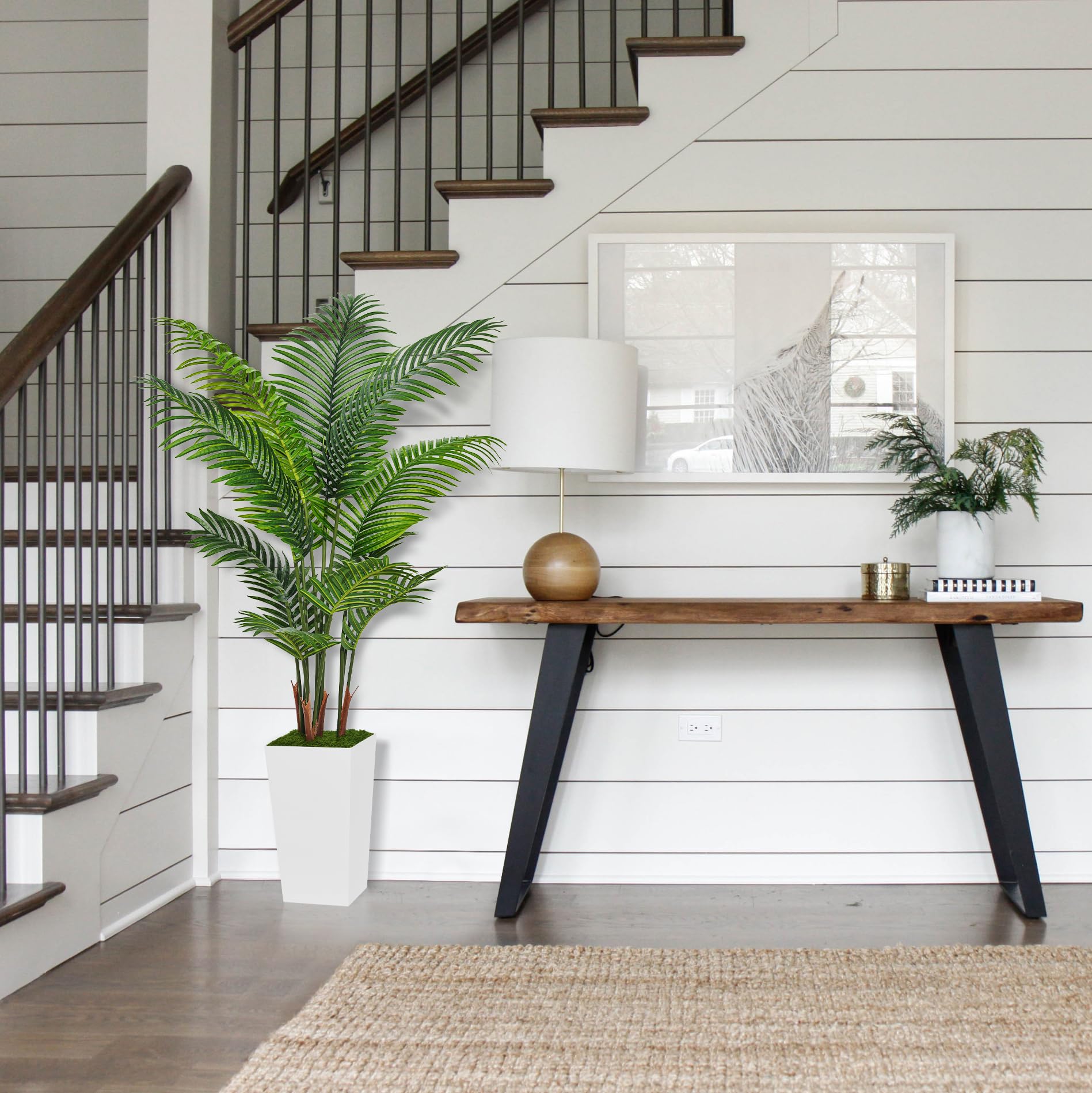 - Proportional and Quality Planter: Our planter has been meticulously designed and sized to seamlessly complement our faux palm tree, offering a perfect balance of aesthetics and functionality. Additionally, products that include all the essential components: a fake tree, a planter and artificial moss, eliminating the need for extra purchases and saving customers time and effort.