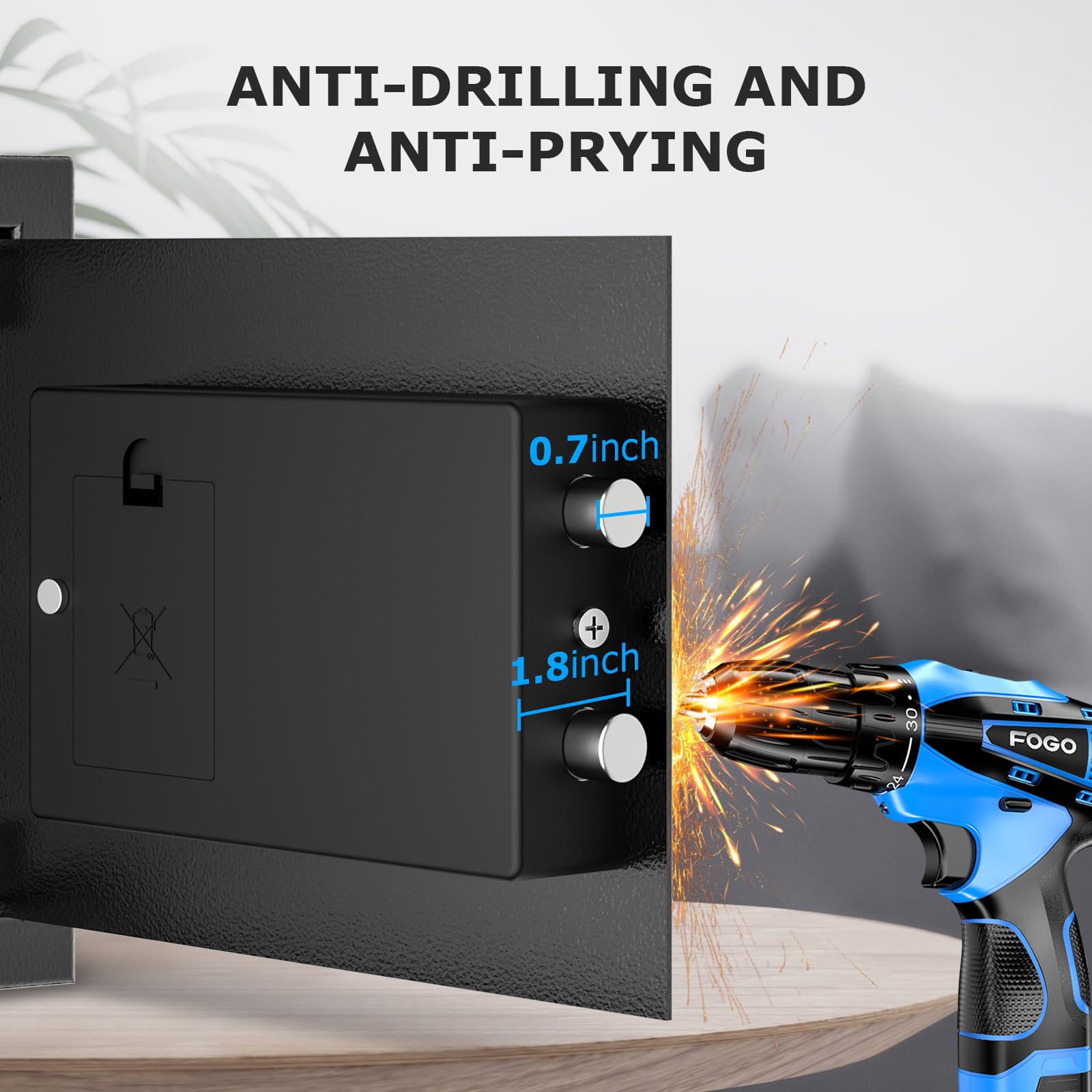 - SECURE AND DURABLE: Constructed with SPCC steel, this safe is strong and reliable. It features two 18mm diameter active locking bolts, providing maximum security and protection for your valuables; The safe has undergone rigorous testing, proving its outstanding durability and material quality
