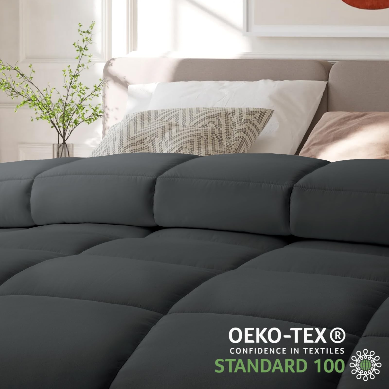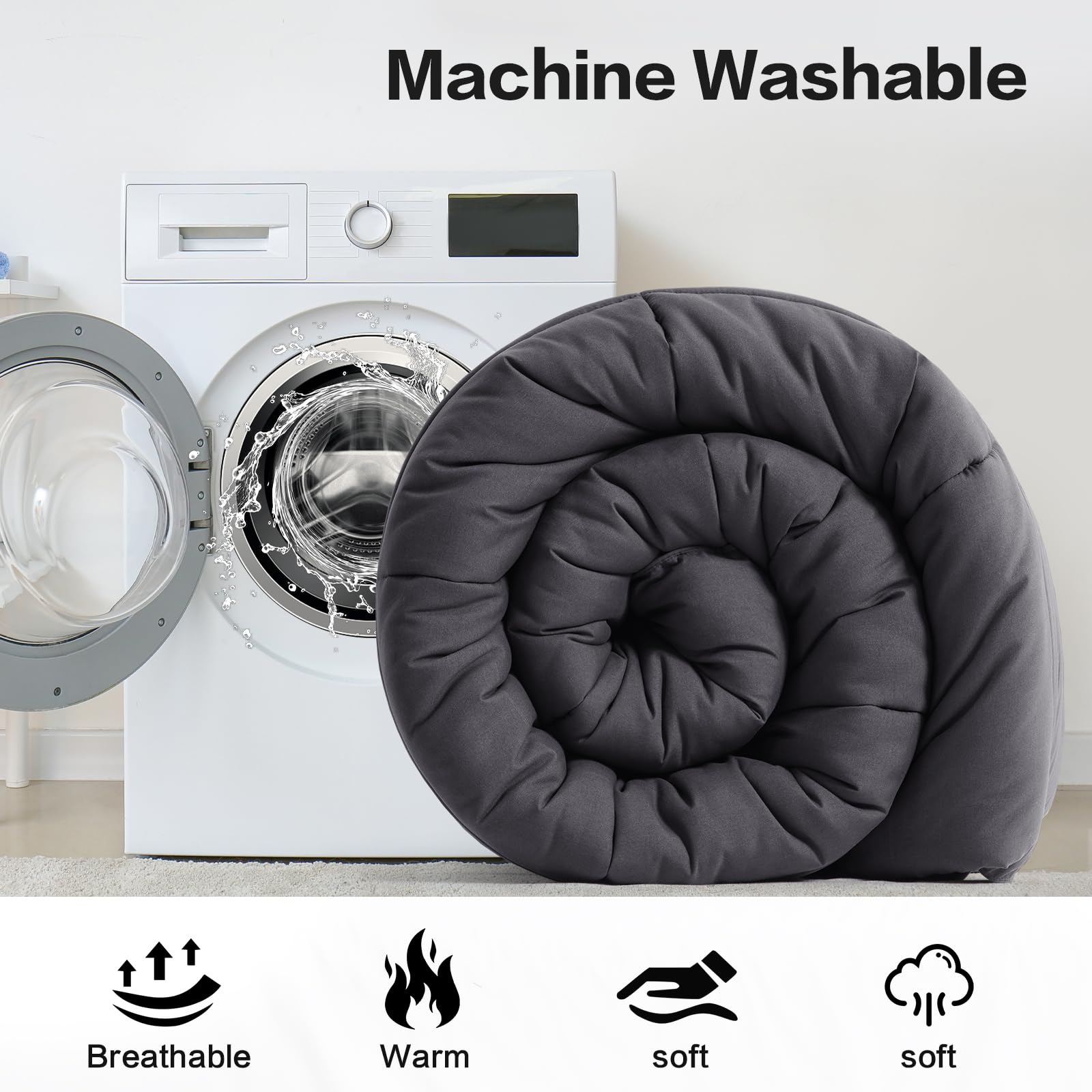 - 1.Premium whole-piece filling, extremely SOFT and NOISELESS brushed fabric cover, our comforter is the perfect choice for all people at different ages