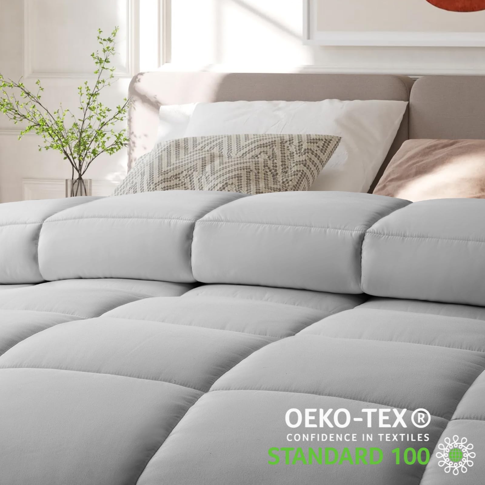 - 1.Premium whole-piece filling, extremely SOFT and NOISELESS brushed fabric cover, our comforter is the perfect choice for all people at different ages