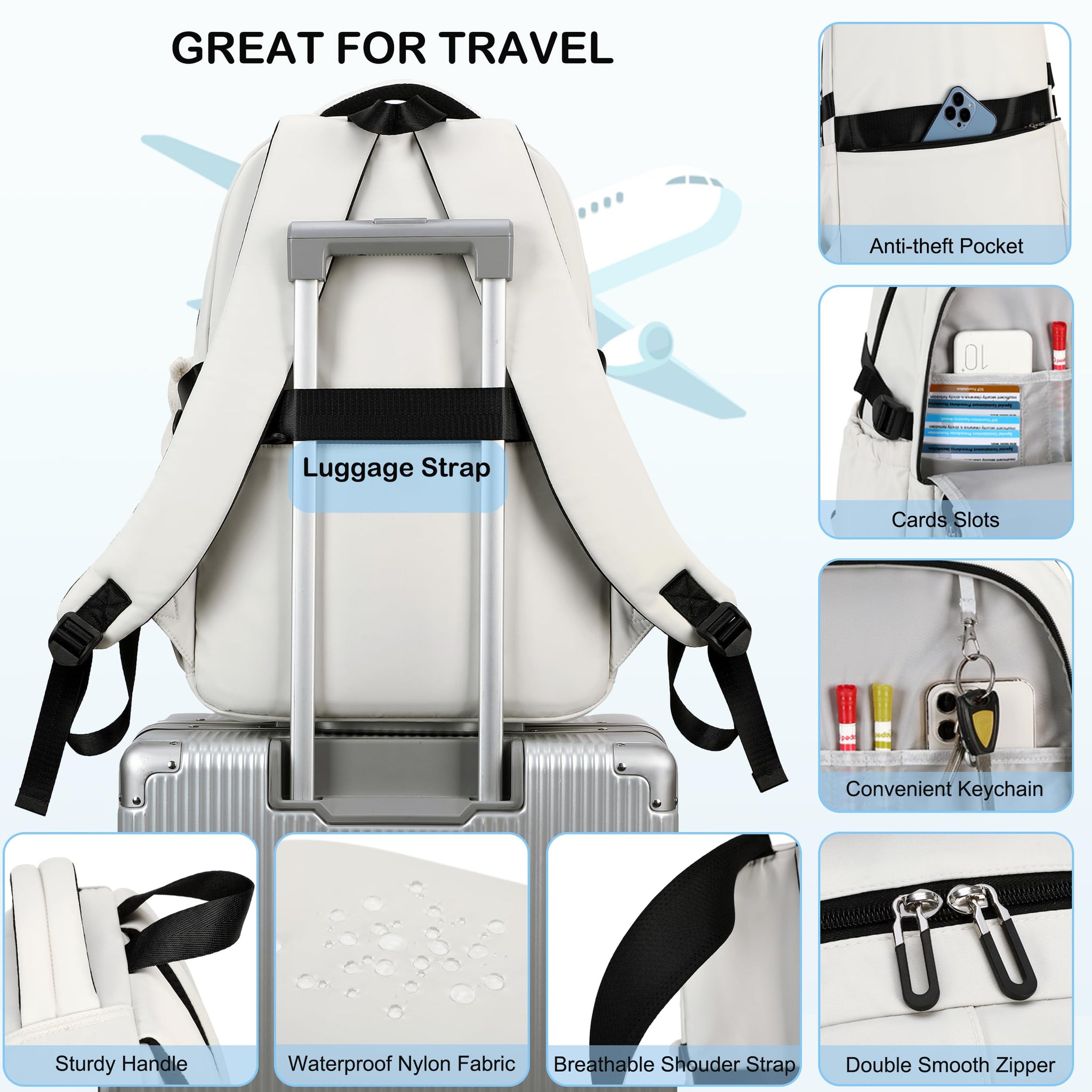 - ▶Anti theft & Pracical Backpack: The fashion laptop travel bagpack designed for airplane traveling approved, easily accessible hidden pockets for valuables on the back keep your valuables safe and handy. And the luggage strap is very practical so that you can attach the backpacking to the trolley of your luggage to make your trip more comfortable.