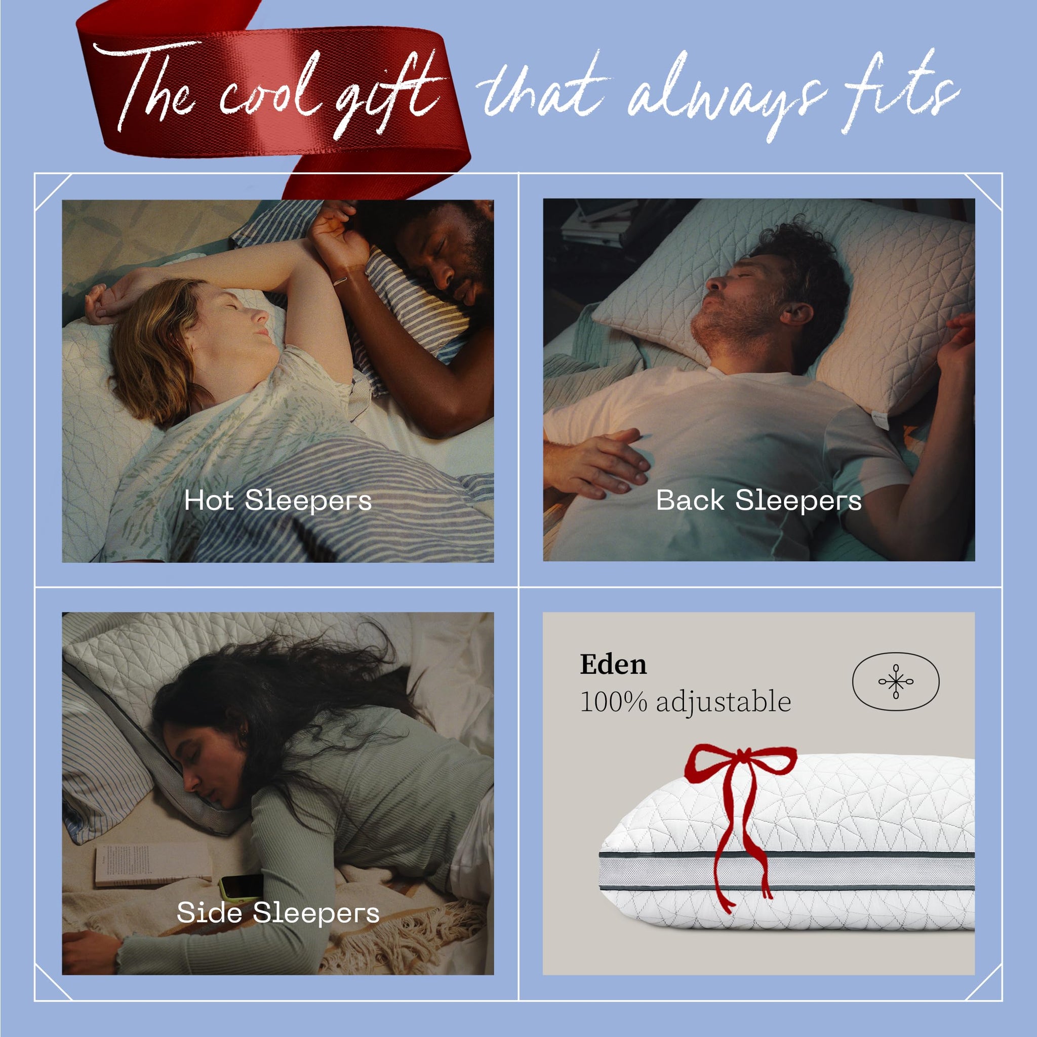 - Look No Further, Hot Sleepers: Your search for the perfect adjustable pillow has come to an end. The Eden features our soft, gel-infused memory foam & microfiber fill blend for a cooler sleep experience and a gusseted design for edge-to-edge support.