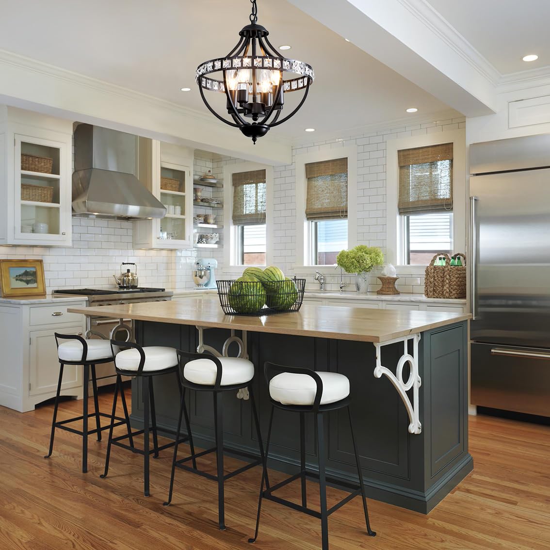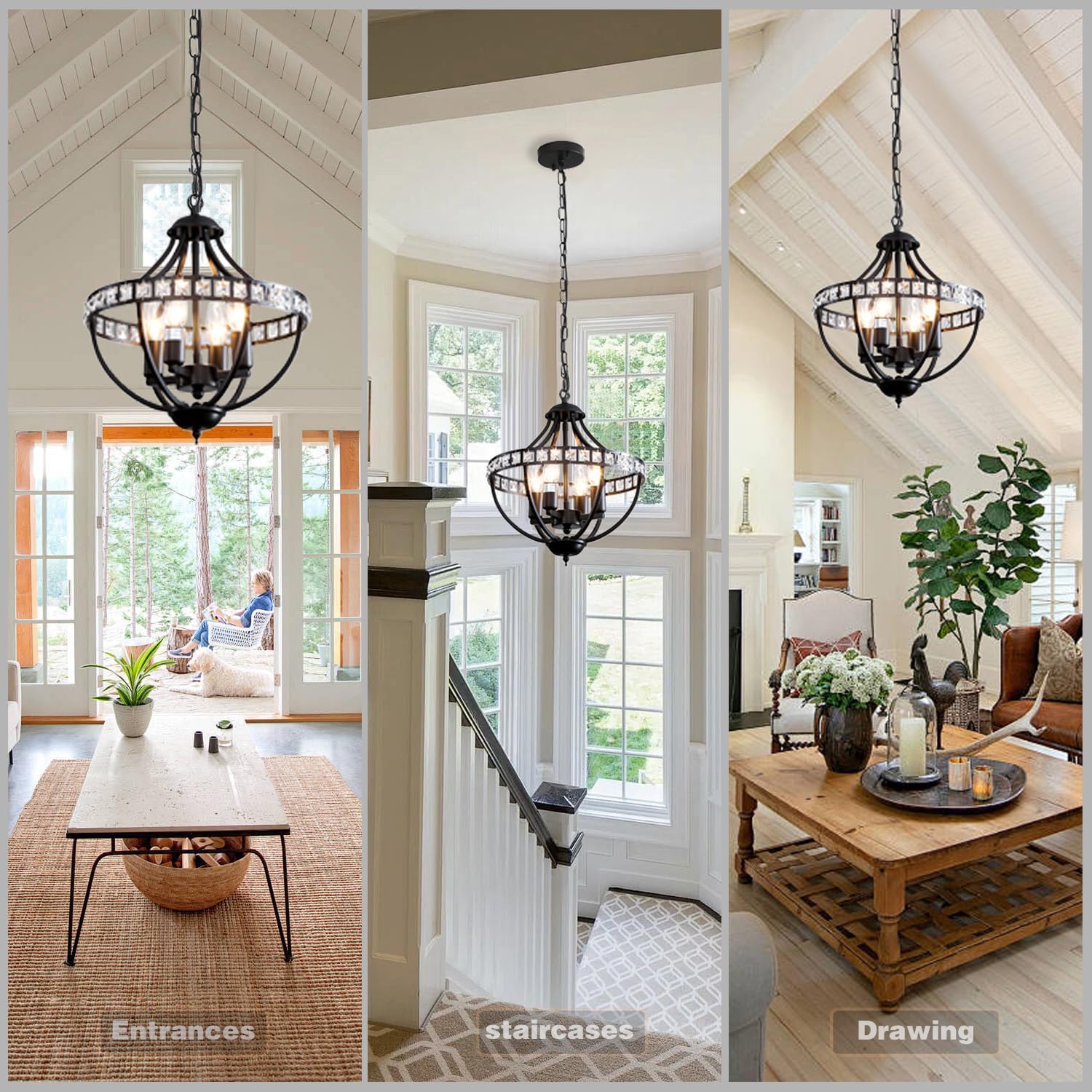 - ☀Height Adjustable:This black crystal chandelier is adaptable for sloped, hanging and flat ceiling. Fixture Dimensions: 17.3" high x 13" wide. Comes with a pendant chain (59 inches), it is an adjustable farmhouse chandelier that you can adjust the hanging height according to different home decors and locations.