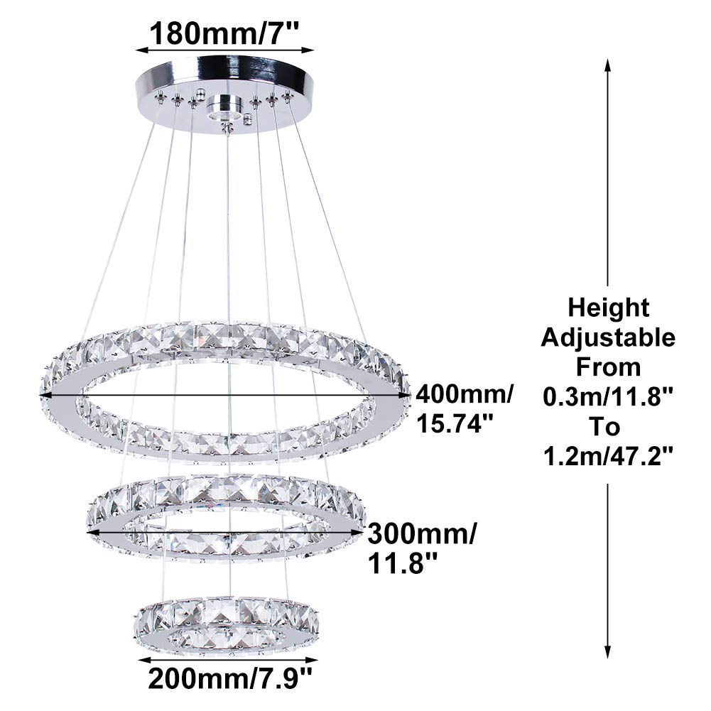- Chandeliers Ring Size Diameter:7.9”+11.8”+15.7”; Maximum Hanging: Height Adjustable from 11.8” to 47.2”.