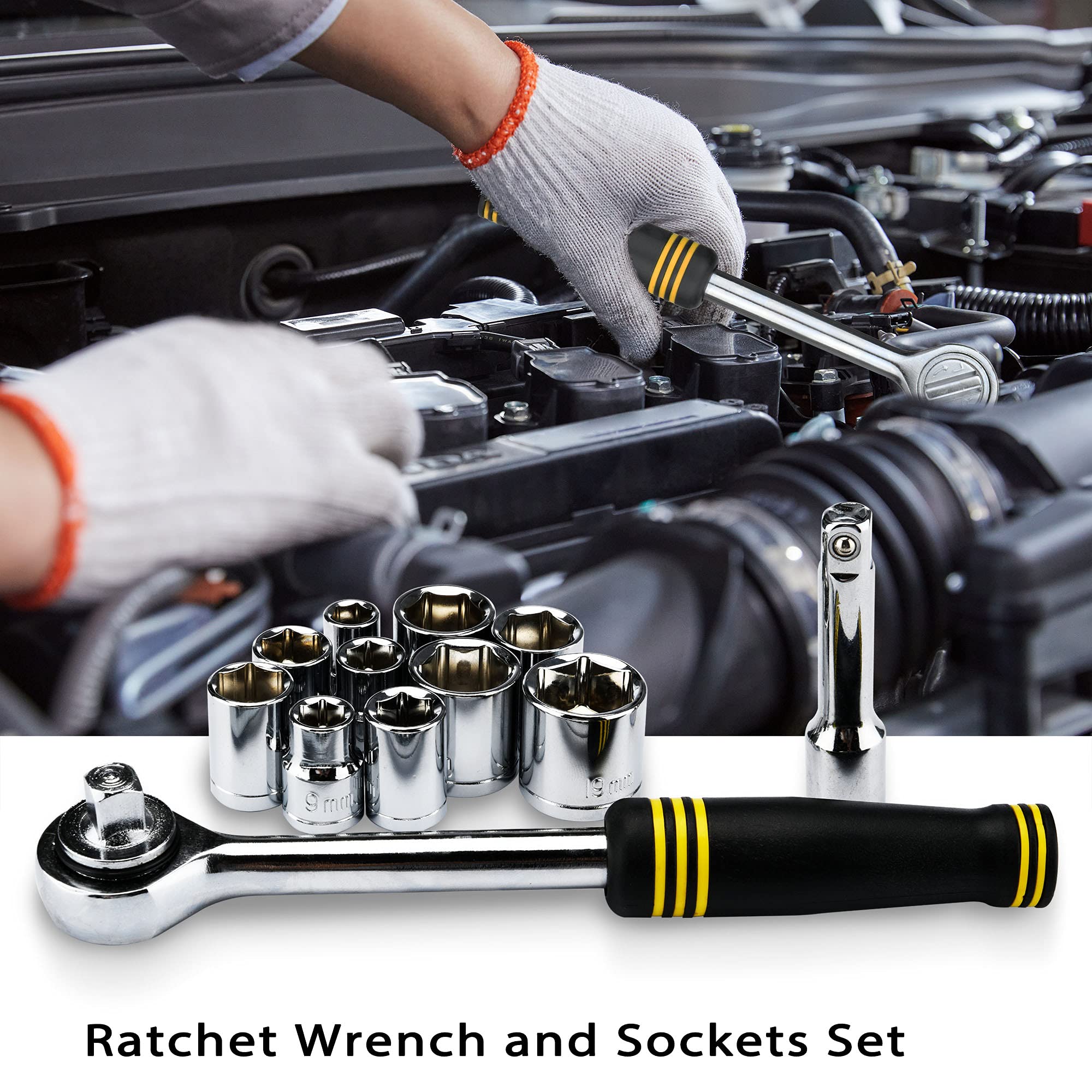- COMPLETE VARIETIES: a combination of a variety of basic tools, screwdrivers, hammer, wrenches, allen wrench set, measuring tape, pliers, sockets set, bits set and so on. Also has a dual function small quick-release ratchet. Limited tools with unlimited functionality.