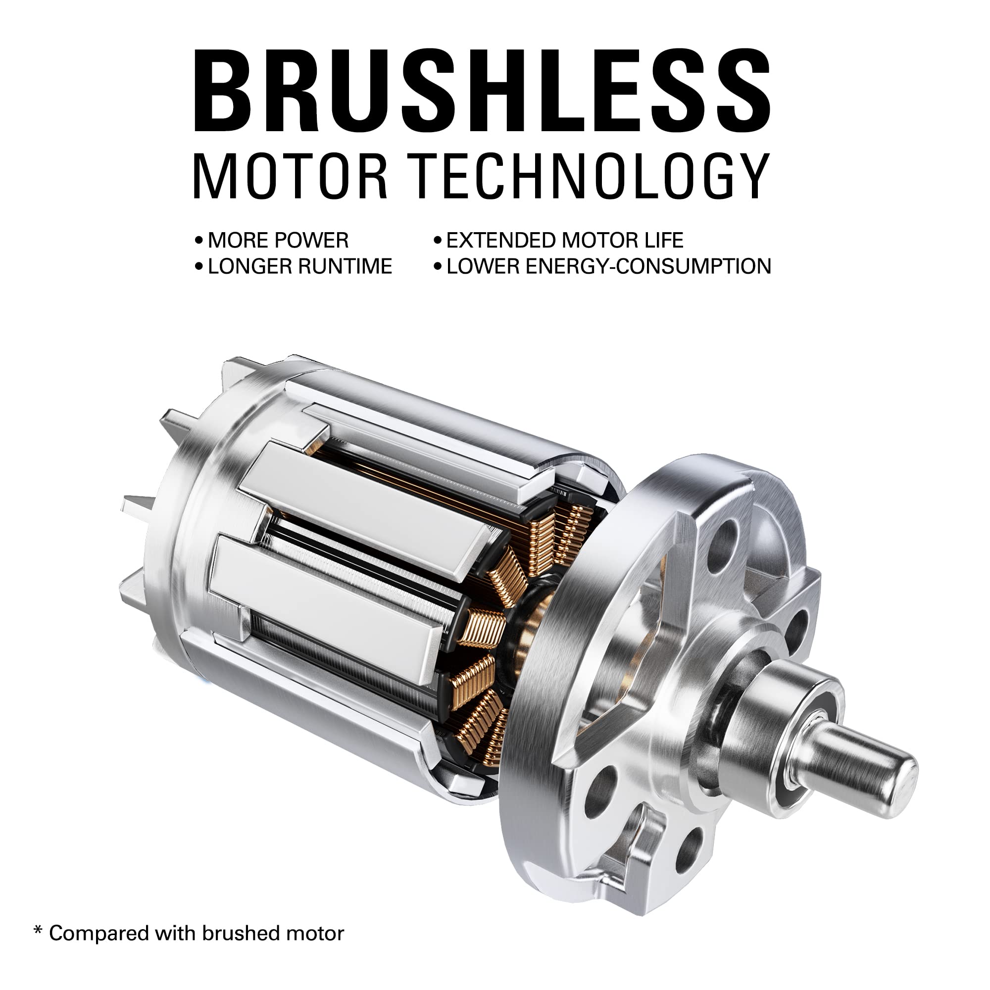 - BRUSHLESS MOTOR TECHNOLOGY : 2X more torque. Provides more power, longer runtime, quiet operation, and extended motor life