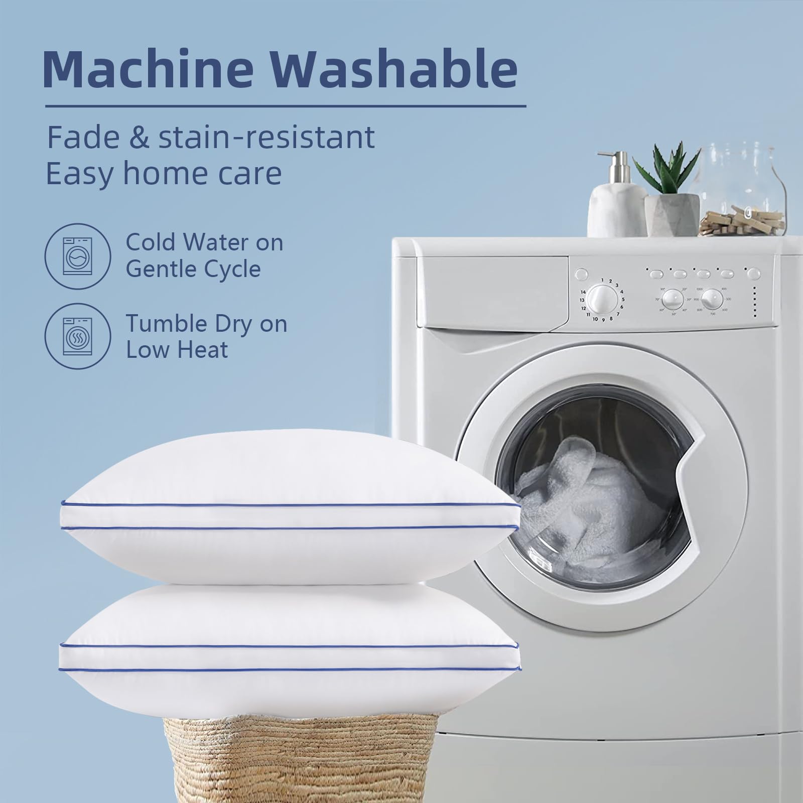 - Breathable & Skin-friendly: 2 pack bed pillows are made of premium breathable microfiber material that promotes airflow, stay cool and prevents overheating, while its smooth, skin-friendly surface ensures a soft and comfortable sleep