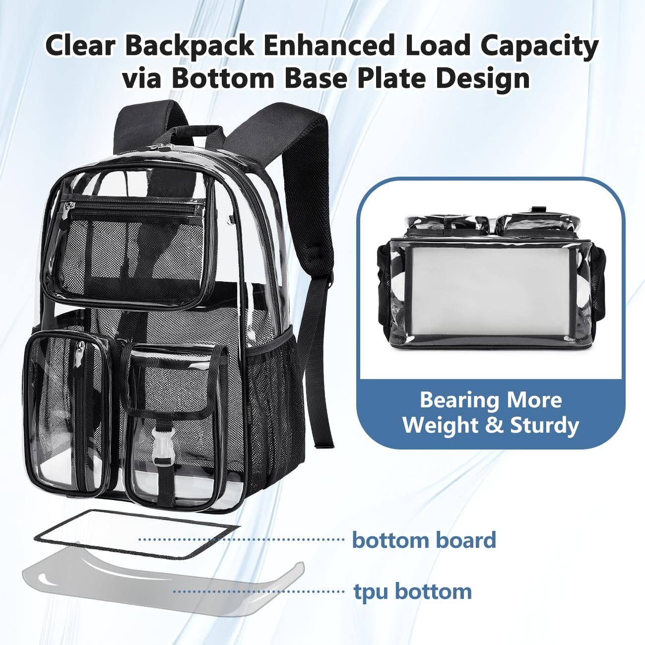 - Applicable Security Checks -- Heavy duty clear backpack maintains the security and easy accessibility of all your valuables and accessories. Its see-through design enables you to swiftly pass through security checkpoints without unnecessary delays.