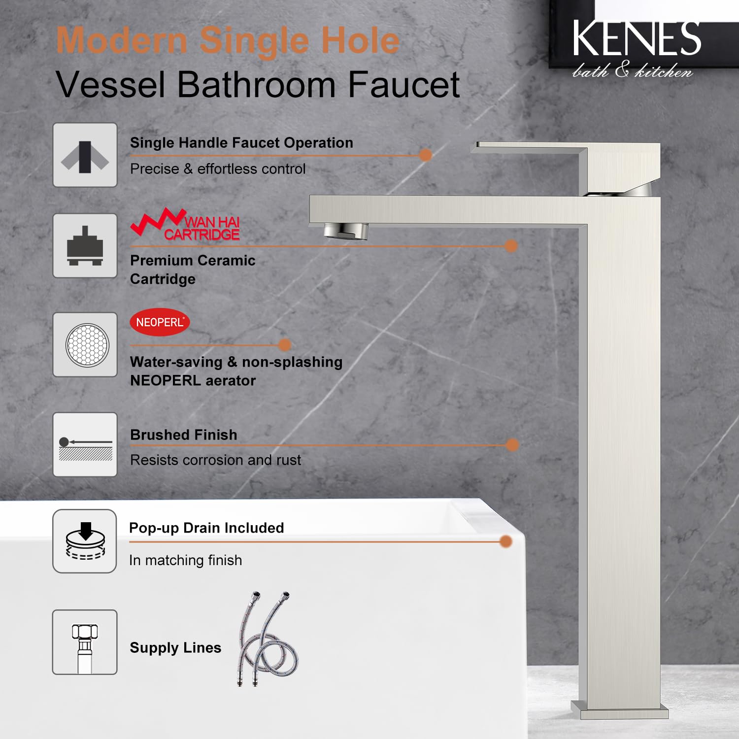 - AFTER-SALES SERVICE - Quality assurance high bathroom faucet is easy to use. KENES customer service team can provide 24-hour customer service support. If you are still in progress, please contact our friendly service team.