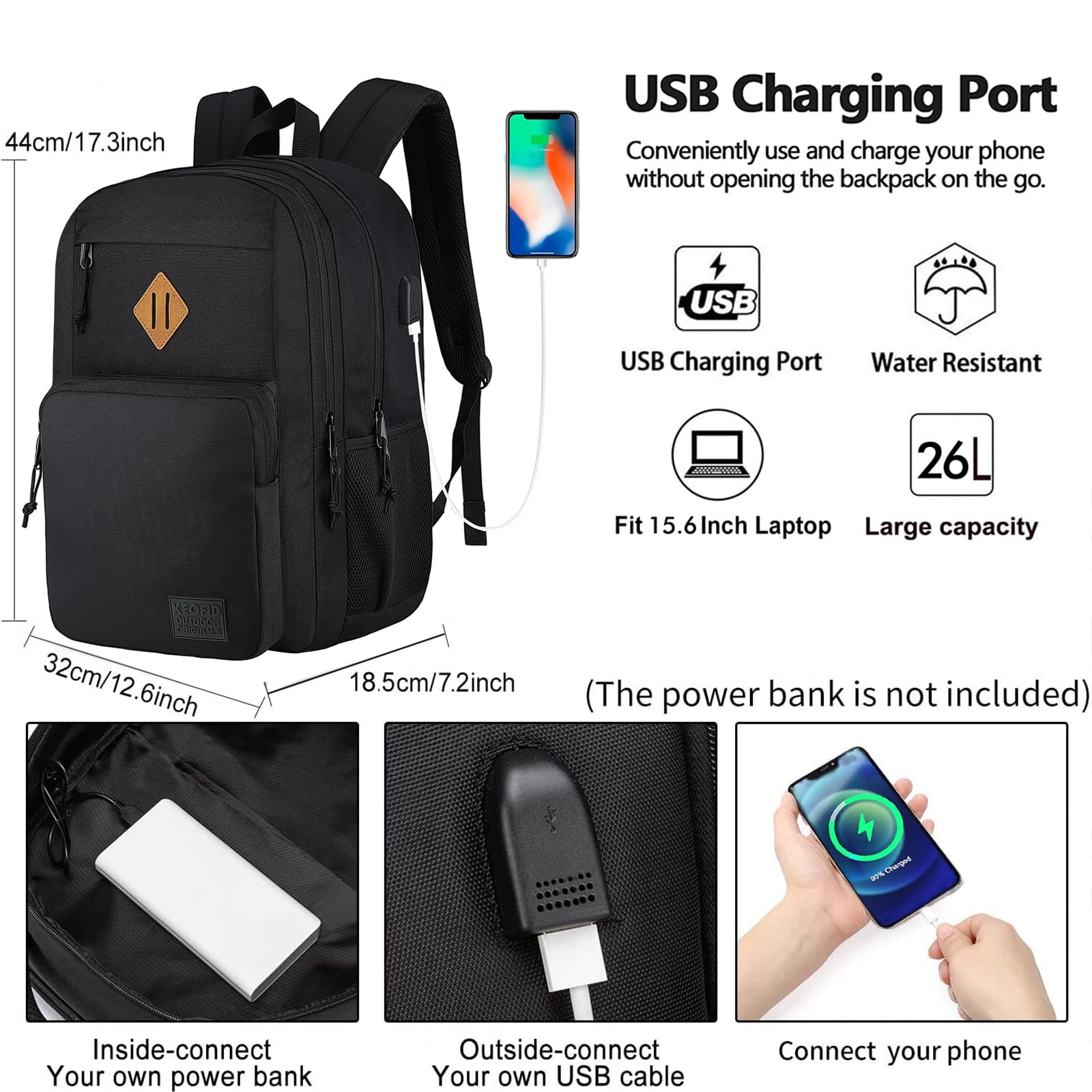 - Material and Size: KEOFID laptop backpack is made of water-resistant, tear-resistance fabric provides a sturdy and chic exterior. The backpack SIZE is 17.3*12.6*7.2 inches, easy to organize all personal items and fit up to 15.6" laptops
