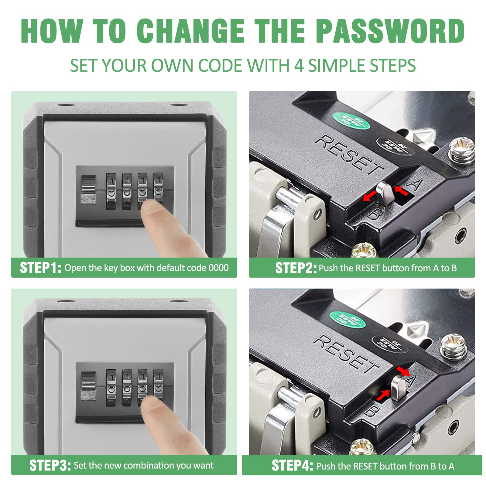 - 【Safe & Easy to Set】This combination lock box is an adjustable lock with a 4-digit code and it offers 10,000 unique combinations, maximizing the security and eliminating the risk of lucky guesses. And it’s easy to set your own password with the manual.