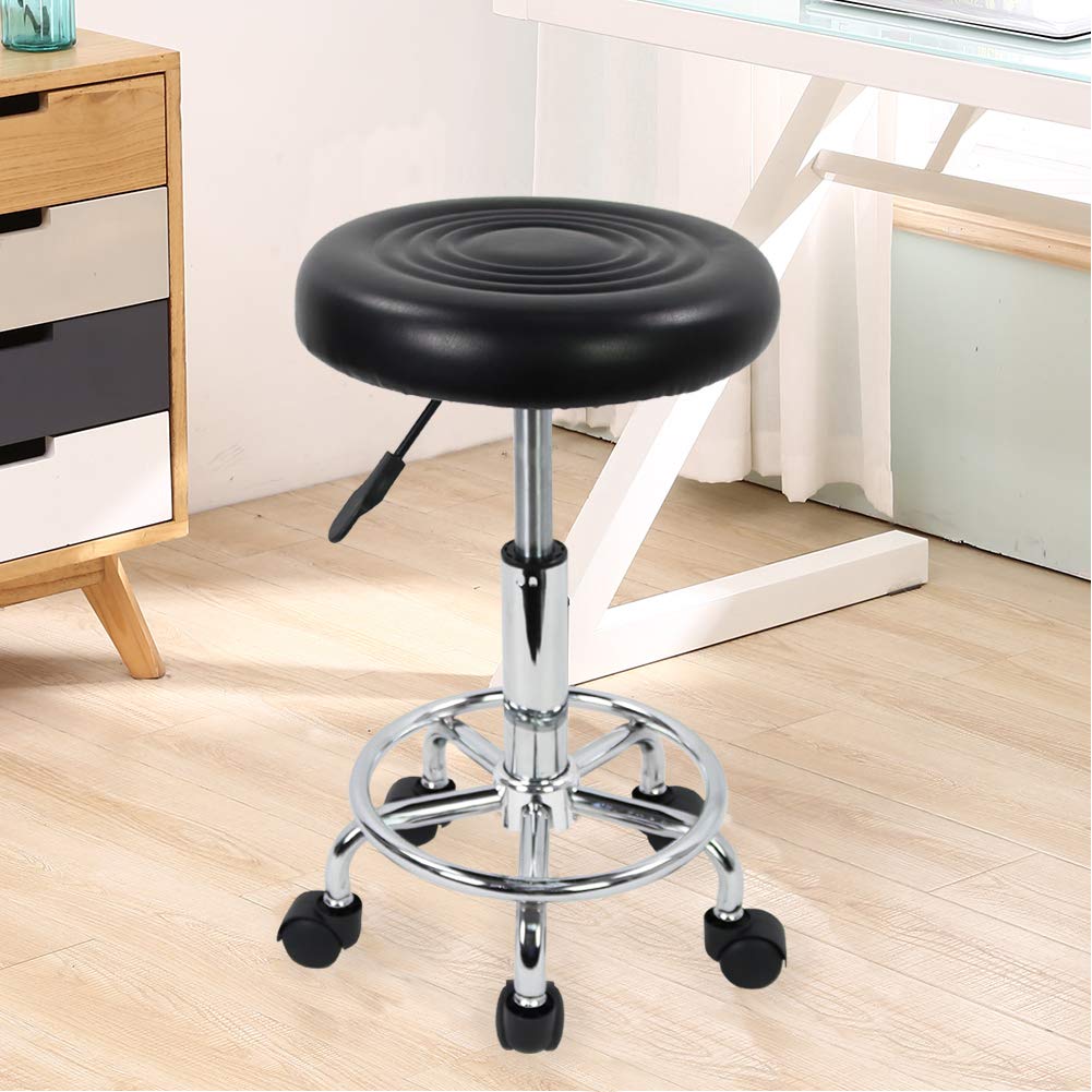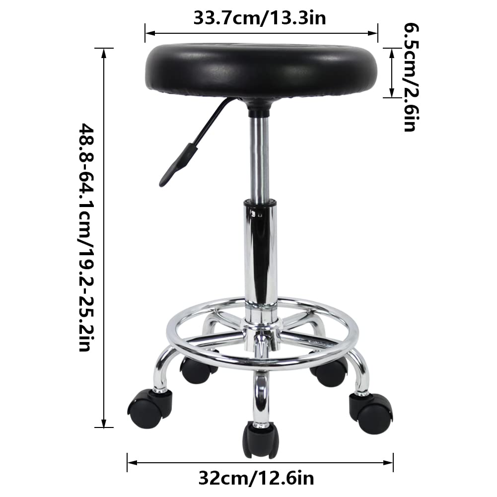 - Comfortable:The salon stool equipped with a modern turbo round cushioned seat, PU leather waterproof, easy to clean and maintain.